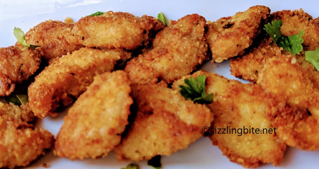 And you don’t have to deep fry it completely, you can use 1/4th-inch oil to fry these chicken nuggets.